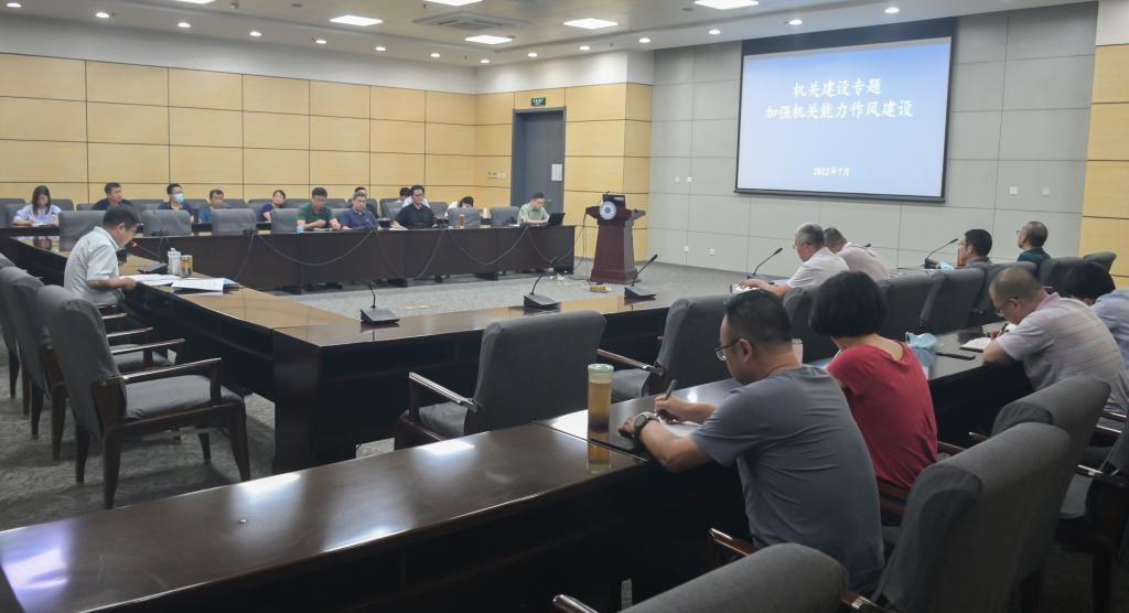 7月13日上午,bv伟德召开2022年暑期工作研讨会机关能力作风建设专题会。会议由机关党委书记叶佳林主持。机关各职能部门负责人,图书馆、后勤处、离退休工作处负责人参加。
