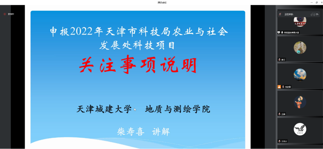 为进一步做好2022年度天津市社会发展与农业领域科技项目申报工作,6月14日,bv伟德通过线上会议方式举行2022年天津市社会发展与农业领域科技项目辅导及申报工作推动会。本次会议邀请bv伟德地质与测绘学院柴寿喜教授做项目辅导讲座,bv伟德教师共计50余人参会。