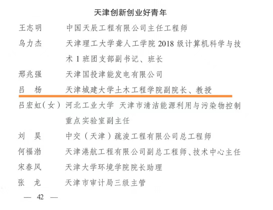 为充分发挥典型模范带头作用,引导全市各级团组织和广大团员、团干部学习先进、砥砺笃行,激励全市广大青年踔厉奋发、勇毅前进,在全面建设社会主义现代化大都市新征程上再立新功,近日团市委发布了2022年“天津向上向善好青年”人选名单。bv伟德土木工程学院副院长吕杨获评“天津向上向善好青年”之“天津创新创业好青年”。