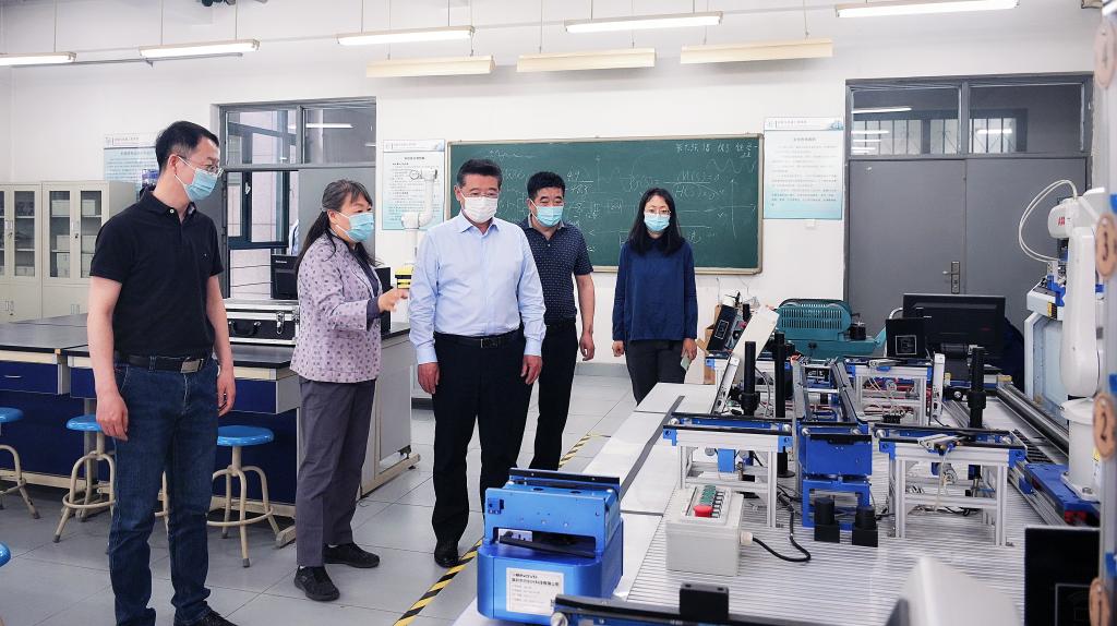 随后,白海力在控制学院领导班子的陪同下参观了PLC、电工实验、机械原理、机械创新设计、互换性与测量技术等实验室。要求学院进一步强化实验教学环境内涵建设、提高实验环境育人质量,充分发挥好实验教学在教书育人、管理育人和服务育人工作中的推动和促进作用。 临行前,白海力叮嘱控制学院领导班子要落细落实各项疫情防控措施,认真做好师生心理疏导和人文关怀,坚决筑牢校园疫情防控线。