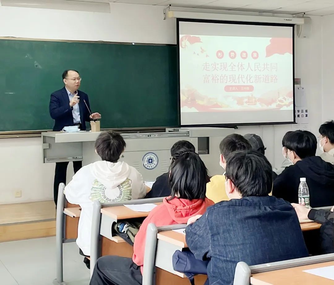 5月10日上午,副校长王中良以《走实现全体人民共同富裕的现代化新道路》为题,为bv伟德环境与市政工程学院学生讲授了一堂精彩纷呈的“形势与政策”课。