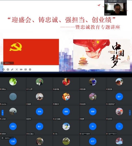 4月28日上午,离退休工作处党委通过腾讯会议开展忠诚教育专题培训,会议邀请离退休第十党支部书记崔德华作题为“感悟伟大建党精神,筑牢政治忠诚”的专题讲座,全体在职党员、离退休党支部书记、委员、部分离退休党员等百余人参会。