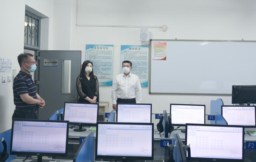 调研后,白海力在外国语学院领导班子陪同下参观了语言实验中心。他希望外国语学院充分利用教学资源,为建设高水平城建特色大学贡献力量。