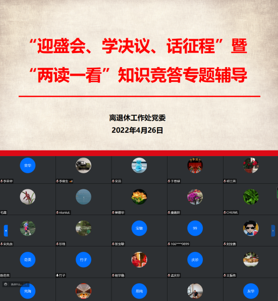 近日,离退休工作处党委为深入学习贯彻党的十九届六中全会精神,持续推进“两读一看”学习活动开展,组织全体在职人员和离退休老同志参加“迎盛会、学决议、话征程”暨“两读一看”知识竞答活动,并开展党的十九届六中全会精神学习会暨知识竞答专题辅导,全体在职同志和离退休老同志80余人参加。