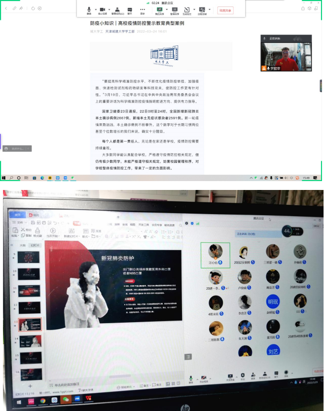 部分“红旗班宣讲团”成员将班级阵地作为宣讲主战场,计算机学院学生党员刘致浦等同学通过腾讯会议为班级开展疫情防控微宣讲,分别从学校防疫政策、在校学生如何做好日常防护、居校防疫期间应如何保持心理健康等方面向同学们进行宣讲。使同学们更加深刻理解了学校疫情防控相关规定,也纷纷表示会积极配合学校的防疫措施,加强自我管理,为科学防疫尽一份力。