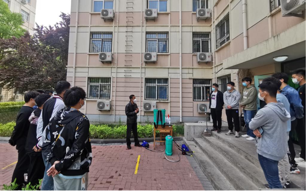 活动开始前,学校公寓管理科老师向所有成员进行了防疫消杀培训,针对消杀的区域、步骤、方法进行了详细讲解,对消毒试剂的配制、消杀装置的使用、消杀注意事项等进行了详细说明。