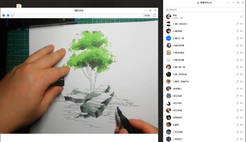 在线上教学过程中,教师充分利用超星学习通中的智慧教学工具,如:签到、选人、抢答、投票、主题讨论等,提高学生课程参与度,同时利用腾讯会议平台进行课程直播。《专业美术2》除了要求学生具备一定的专业理论之外,还需要学生动手去实践,那么教师的现场演示和辅导也非常重要,课程组利用腾讯会议直播功能演示手绘技法,同时开启师生视频和语音交流,零距离的师生互动活跃了课堂气氛。在辅导环节,教师通过不同的时间节点,要求学生将手绘的作业,分阶段发送到超星学习通班级空间内,同时教师利用腾讯会议共享屏幕对每位同学发送的作业进行详细点评。最后,师生通过超星学习通的讨论与投票功能评选出每堂课程的优秀作业,并计入平时成绩。