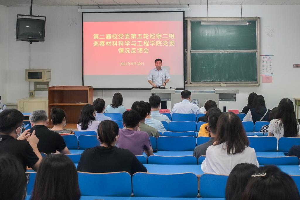 按照学校党委巡察工作统一部署,2022年9月30日,第二届校党委第五轮巡察二组向材料科学与工程学院党委反馈了巡察情况。校党委副书记、校长白海力出席反馈会,市纪委监委驻学校纪检监察组副组长逯纪美、巡察工作领导小组成员、巡察二组组长李佳、巡察组全体成员、巡察办、派驻纪检组同志、材料学院全体教职工和部分学生代表参加反馈会。会议由材料学院党委书记朱复义主持。