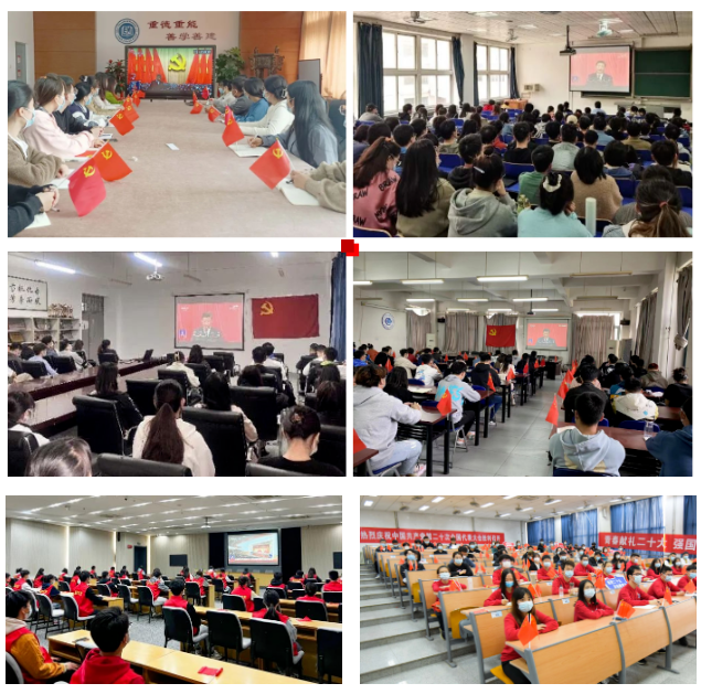 学校第一时间召开党委工作扩大会议传达学习贯彻党的二十大精神;第一时间组织校院两级党委理论学习中心组开展党的二十大精神专题学习,发挥领导班子带头作用。充分利用“三会一课”、党团日活动等进行再学习,通过原原本本学习报告内容,引导干部教师深刻领会报告主要内涵和精神实质基础上,结合实际工作学,推动党的二十大精神入脑入心。