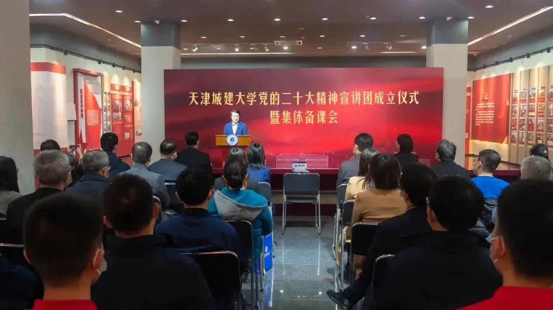 史庆伟在总结讲话时强调,党的二十大是在全党全国各族人民迈上全面建设社会主义现代化国家新征程、向第二个百年奋斗目标进军的关键时刻召开的一次十分重要的大会。党的二十大报告为新时代新征程党和国家事业发展、实现第二个百年奋斗目标指明了前进方向、确立了行动指南。学习宣传贯彻党的二十大精神是当前和今后一个时期全校的首要政治任务。他希望全体领导干部和宣讲团成员要深刻认识把握党的二十大的重大意义,完整准确全面领会党的二十大精神,深刻领会“两个确立”的决定性意义,增强“四个意识”、坚定“四个自信”、做到“两个维护”,切实增强政治责任感、使命感;要以高度的政治自觉、饱满的精神状态,扎扎实实搞好学习,认认真真做好宣讲,坚持全面系统、突出重点,把党的二十大精神讲透讲到位,让师生被真理的力量所感召,被自信自强、守正创新的态度所激励,被踔厉奋发、勇毅前行的精神所感染,凝聚起众志成城、攻坚克难的磅礴力量;要坚持学用结合,突出学校特色,把党的二十大精神讲深讲活,全面贯彻党的教育方针,落实立德树人根本任务,推动教育高质量发展,以国家和天津城市建设需求为导向,紧扣“加快成为城市科学领域创新人才中心和创新高地”目标,培养德智体美劳全面发展的社会主义建设者和接班人,为加快建设教育强国、科技强国、人才强国贡献“天城大”力量。