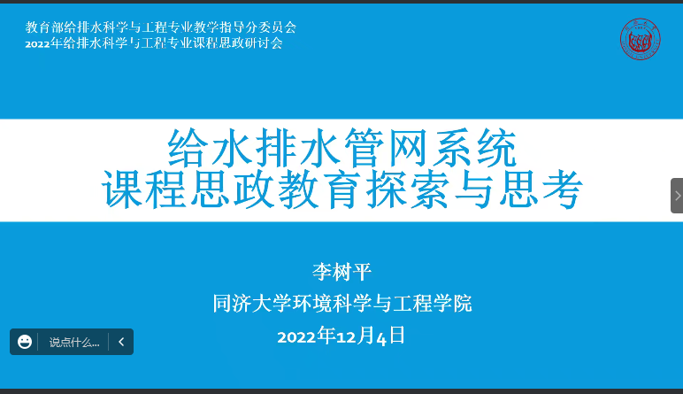 12月4日,由教育部高等学校给排水科学与工程专业教学指导分委员会(以下简称“给排水教指委”)主办,bv伟德承办的“战略·融合·创新—给排水科学与工程专业课程思政建设专题研讨会”以线上会议的方式顺利举行。会议同时开设网络直播,并在全国虚拟教研室建设试点平台直播。来自全国132所院校、企业的626位教师和同行参加了此次大会。