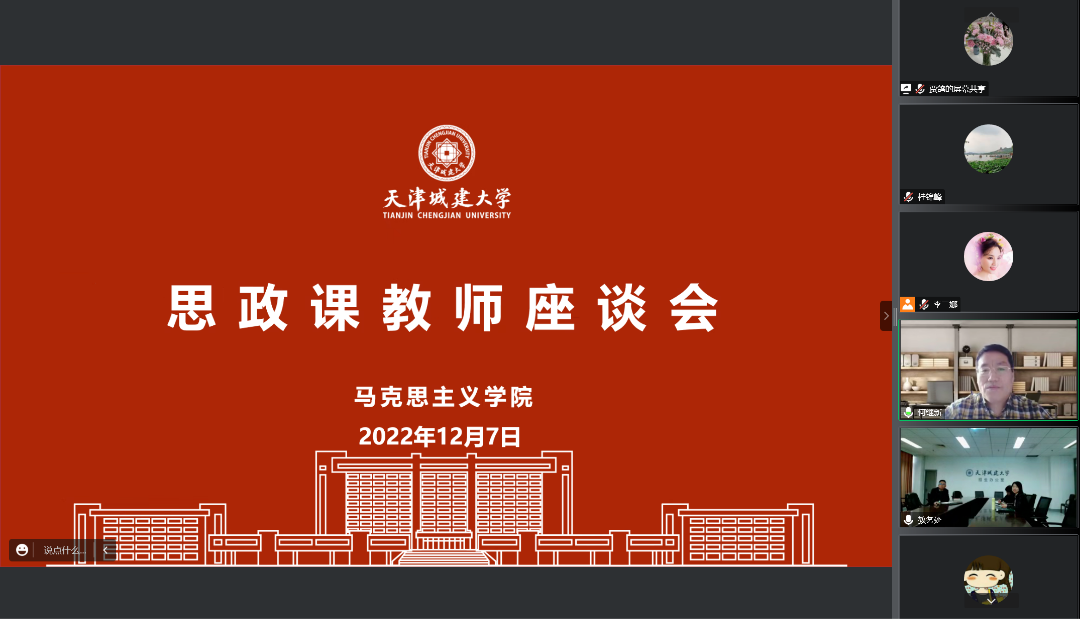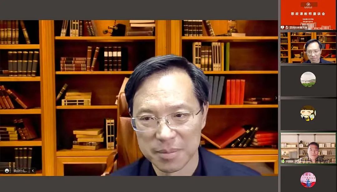 12月7日,副校长陈志华通过云端会议参加马克思主义学院《中国近现代史纲要》课集体备课会,并与思政课教师代表进行座谈交流。教务处处长赵国敏,副处长苑宏英、陈烜,马克思主义学院党总支书记高燕、院长何继新、副院长桂锦峰,能源与安全工程学院党委副书记李二娜以及马克思主义学院思政课教师代表参加会议。会议由何继新主持。