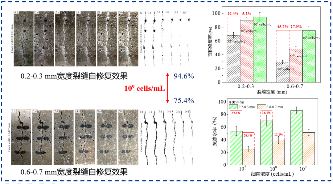 微生物自修复材料对不同裂缝宽度修复效果