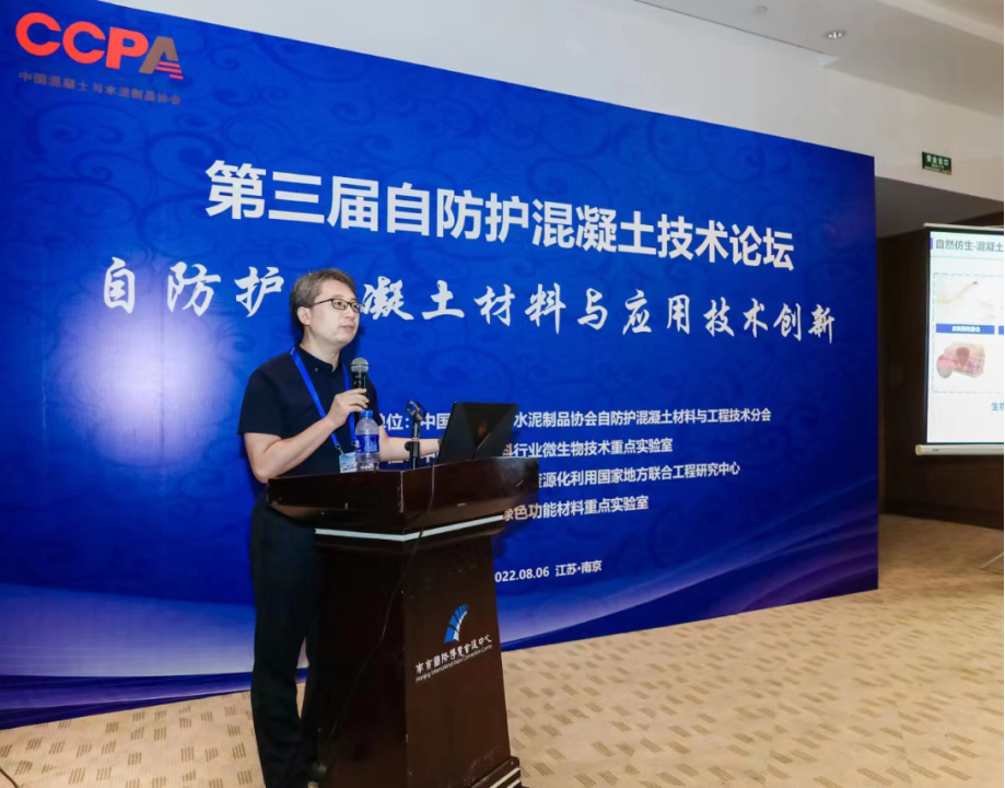 荣辉教授在第三届自防护混凝土技术论坛上做学术报告