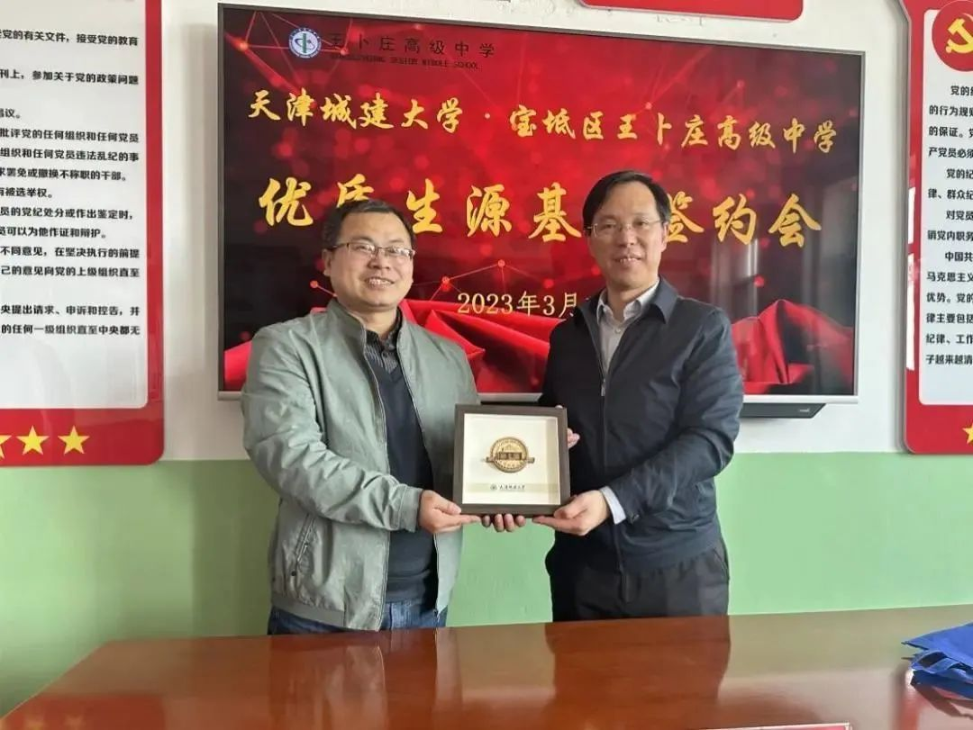 本次与王卜庄镇高级中学签约授牌是学校驻宝坻区王卜庄镇东泗河村、东蛤窝村工作队与招生办公室共同合作,紧密结合实际开展教育扶持联系的成果,充分体现了学校高度重视优质生源基地建设工作,多措并举切实提升招生宣传效果。陈志华副校长一行也走访了学校扶持村,实地调研了扶持工作开展情况。今后,学校将不断深化教育教学改革,努力提升办学水平,积极探索与优秀高中建立有机衔接的人才培养体系,提升人才培养质量,吸引更多来自全国各地的优秀高中毕业生。