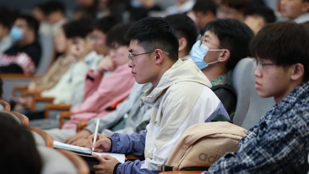 白海力分别从“学校的发展历程和现状”、“读懂国家人才强国的战略考量”、“抓住人才强国战略机遇”以及“做堪当民族复兴重任的天城大人”四个方面进行讲授。白海力用幽默风趣的语言带领师生重温学校45年来艰难的办学历程,了解在一代代天城大人努力下取得的成绩,并回忆了去年bv伟德师生团结一致抗击疫情的校园保卫战,激励师生传承“重德重能 善学善建”的校训精神,以奋斗之姿担当作为;围绕“教育、科技、人才”三位一体国家战略,聚焦学校人才培养目标,鼓励学生抓住机遇,努力成长为国家需要的高质量应用型人才。白海力对同学们寄予三点希望:一是做坚守情怀,守护责任的人,坚守天城大人的情怀,传承和弘扬“重德重能、善学善建”的校训精神,始终将自身发展与学校发展乃至党和国家事业发展紧密联系在一起;二是做知变谋变,勇于创新的人,将自身发展融入国家创新发展战略大局,争做高质量发展的生力军;三是做务实笃行,不懈奋斗的人,不好高骛远,淬炼过硬本领,更好地实现人生价值,凝聚起建设中国式现代化的磅礴力量!