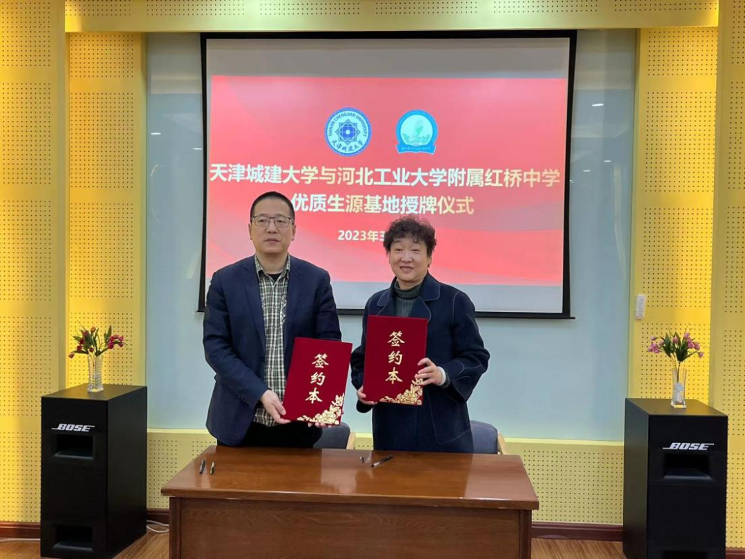 近日,bv伟德参加了在天津市第三中学召开的面向红桥区中学的高考招生咨询会,并在现场与河北工业大学附属红桥中学(原天津市第五十一中学)进行了优质生源基地的签约、授牌仪式。城市艺术学院院长张小开代表学校参加仪式,河北工业大学附属红桥中学党委副书记、校长孙鸿毅出席。招生办公室主任赵国敏、副主任陈烜、城市艺术学院院长副院长王璞等也一同出席了签约仪式。