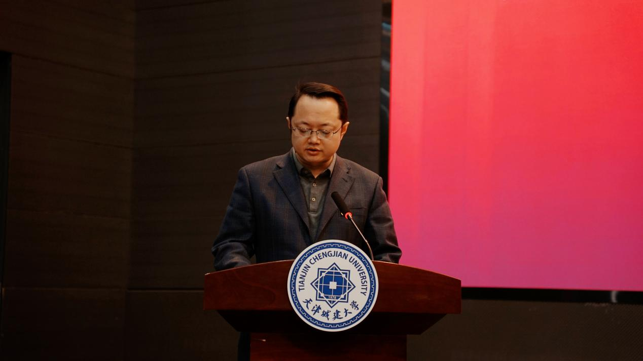 李晓龙作为提供实习实践岗位锻炼职能部门代表发言,表态作为用人单位会以模范行为影响和带动学生,做学生为学、为事、为人的大先生,以身作则,助力学生全面发展,严爱相济,激发学生内生动力,双向赋能,促进学生健康成长。