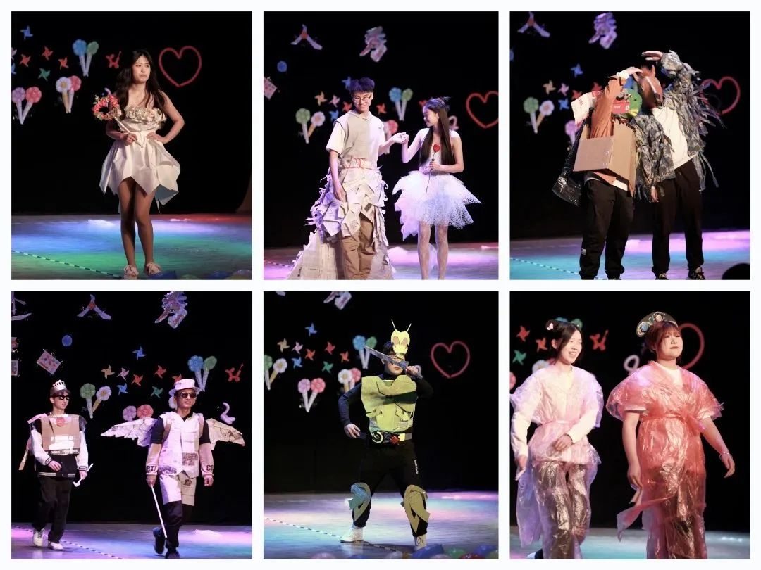 本次活动共分为环保宣讲、T台走秀、才艺表演三个环节。同学们将废旧的包装盒、塑料制品等,制作成形式新颖、主题鲜明的服饰、道具等,以童话故事、动漫以及热映影视剧等学生喜爱的文化为切入点,以情景剧、歌舞等多彩形式,精彩演绎了电信诈骗、学风建设、安全教育等教育内容,呈现了一场别开生面的劳动教育课。现场气氛热烈,掌声不断。