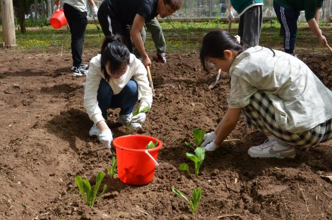 到达农场后,在负责人的带领下,农场老师为师生们详细讲解了农业基础知识,向同学们展示了蔬菜幼苗的种植方法,对农具的使用进行了一对一的指导,提醒同学们在接下来的劳动中注意安全。