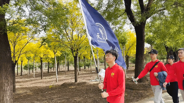 早上8:00,学生代表队集合出发,徒步前往天津市西青区中北镇农场,怀着期待的心情,享受着健走运动带来的愉悦心情,4公里的路程很快就在同学们的欢声笑语中达到了终点。