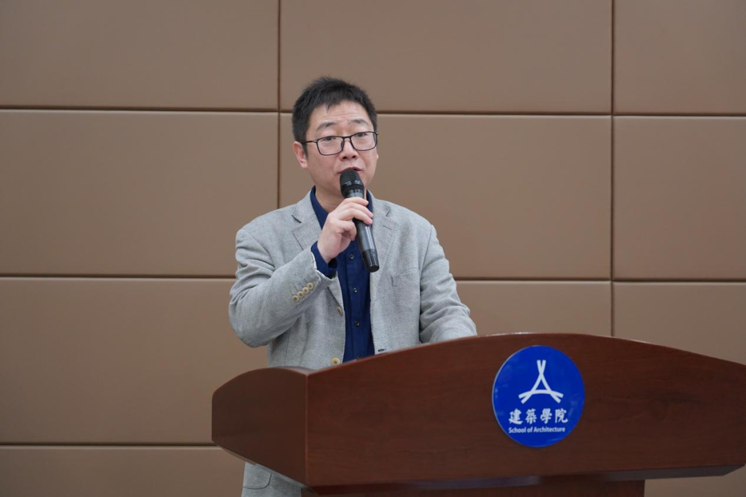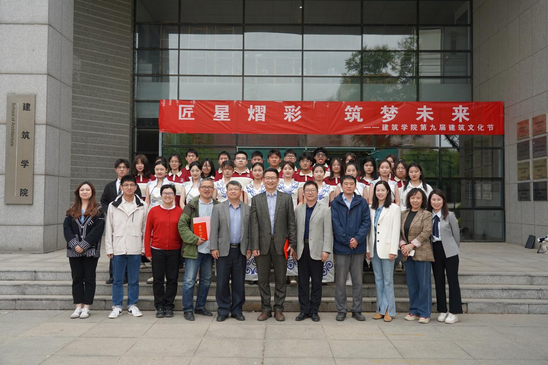 近日,建筑学院举办“匠心熠彩 筑梦未来”第九届建筑文化节开幕式暨校友捐赠仪式。方标世纪规划建筑设计有限公司董事、总建筑师徐书剑,建筑学院负责人,建筑学院党委委员、86级建筑学校友周庆出席活动,各系教师代表、全体辅导员、学生代表参加此次活动,建筑学院党委副书记王菲主持仪式。