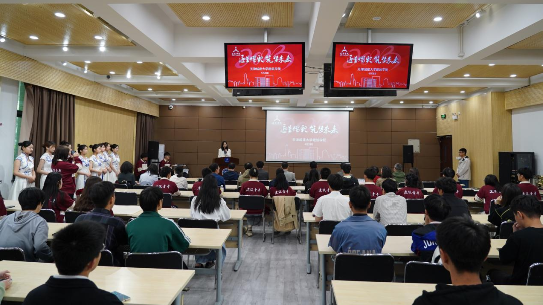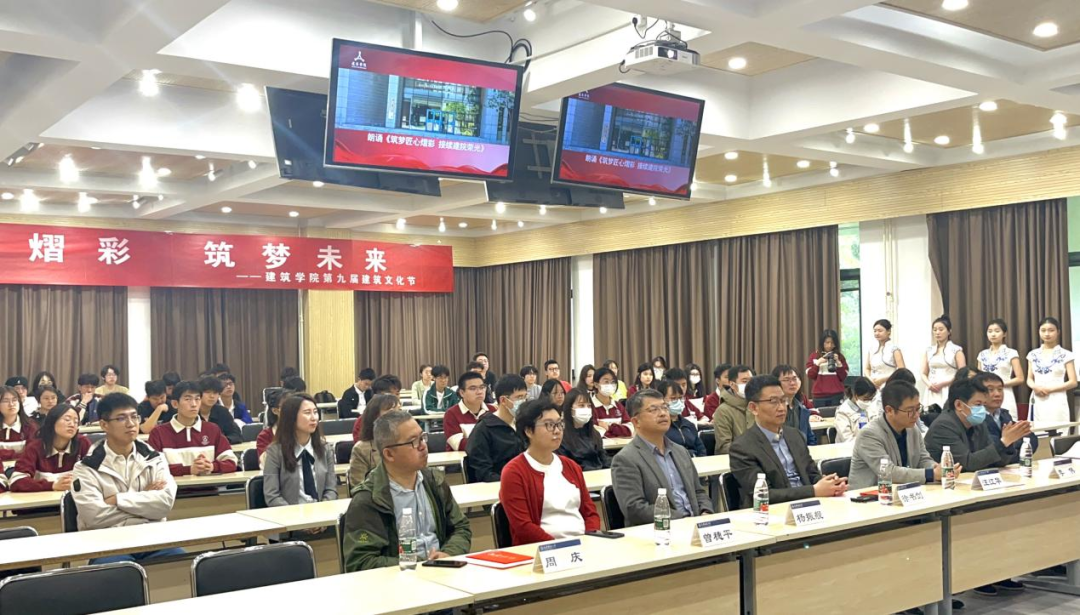 与会嘉宾和师生一同观看建筑文化节宣传视频《匠星·筑梦》