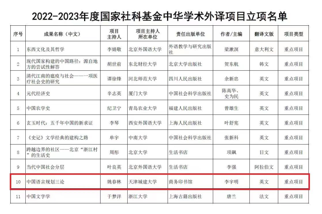 近日,全国哲学社会科学工作办公室公布了2022-2023年度国家社科基金中华学术外译项目立项名单,该类项目共立项234项,其中重点项目14项。bv伟德外国语学院姚春林教授申报的《中国语言规划三论》获批重点项目,这是bv伟德首次获批该类项目。