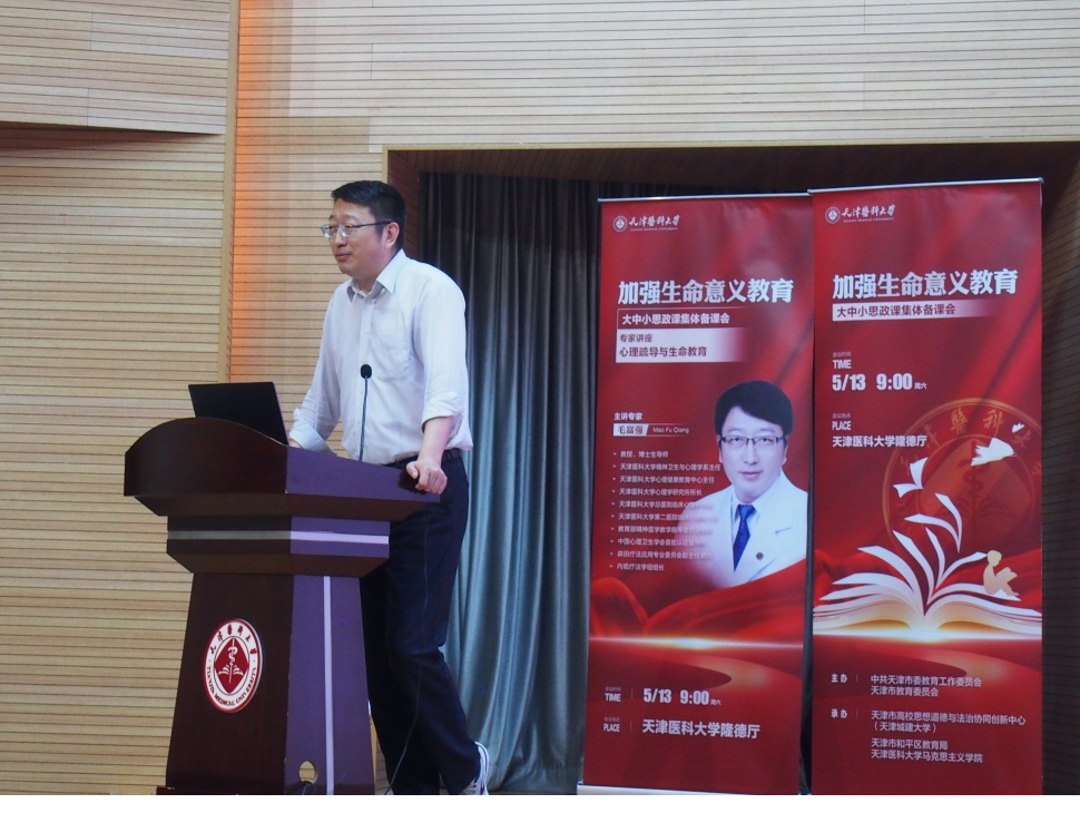 会议邀请天津医科大学精神卫生与心理系主任毛富强教授作专题讲座。毛富强以“生命的意义”为题,从具体案例出发,深度剖析当下大中小学生常见的心理问题及产生原因,建议思政课教学结合心理学理论,从心态调整、情绪调节、生活习惯、人际沟通等多个方面引导学生树立积极乐观的生活态度,珍惜生命。