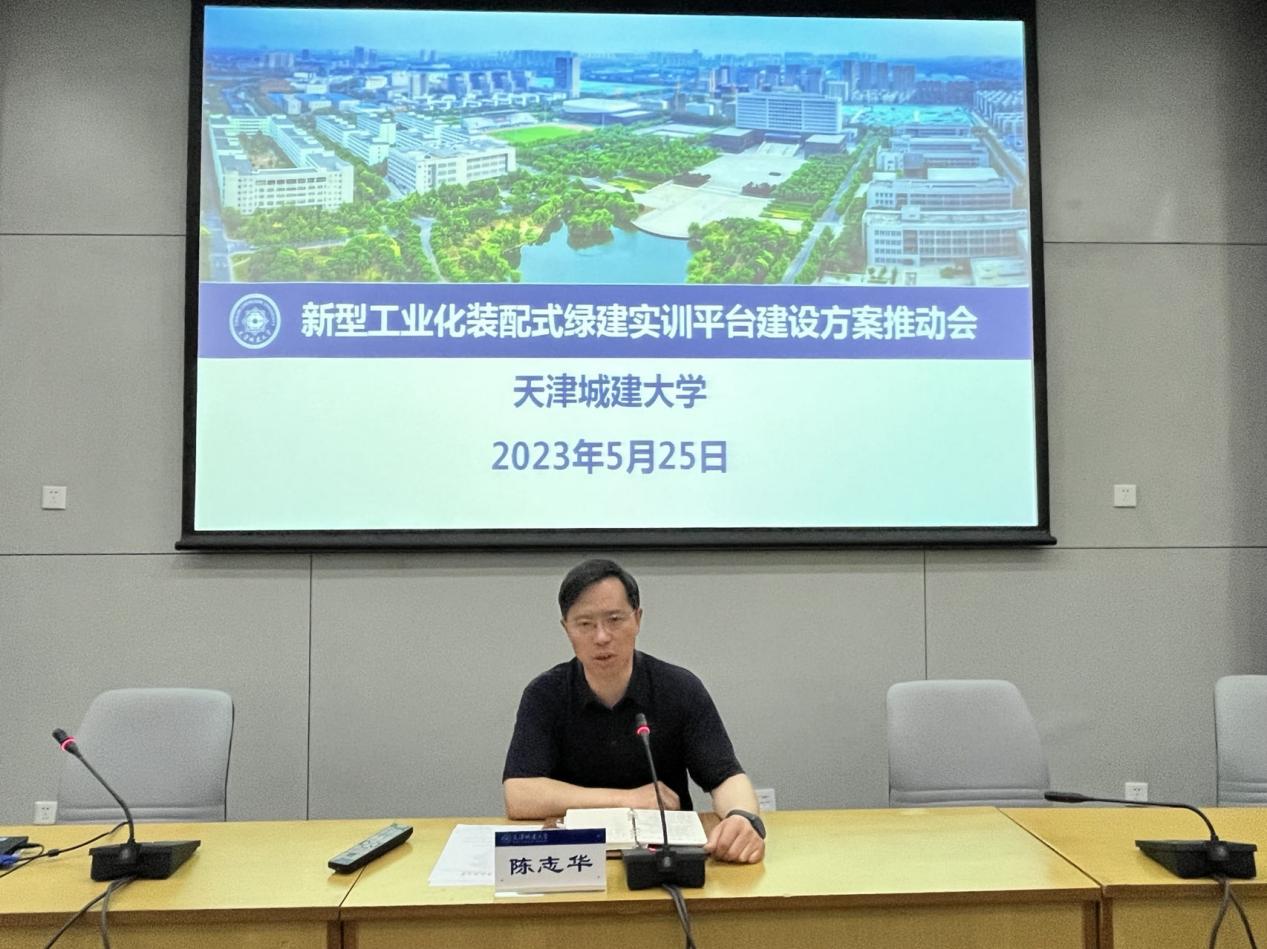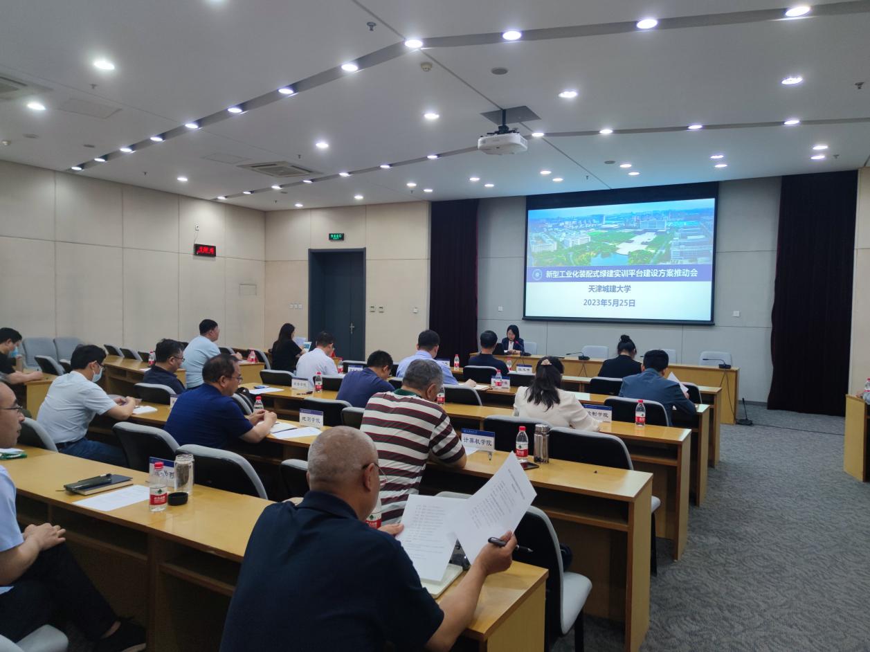 5月25日,新型工业化装配式绿建实训平台建设方案推动会在bv伟德国际1946现代教育中心第四会议室举行。天津市房屋鉴定建筑设计院设计四所所长李萍等一行,副校长陈志华出席会议,各学院院长及代表参加会议。会议由教务处处长赵国敏主持。