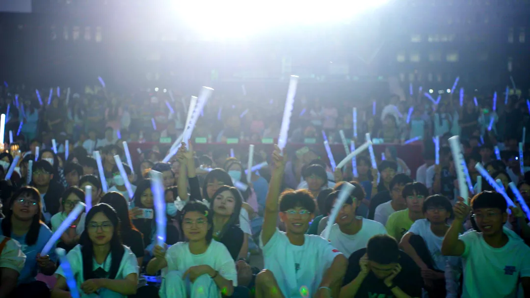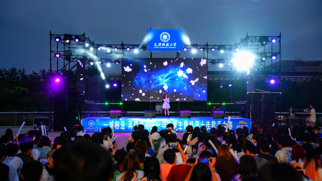 舞台上,灯光璀璨,现场回荡着天城大青年美妙动人的青春之歌,观众席,点点星光,欢呼呐喊中伴随歌声唱响未来。