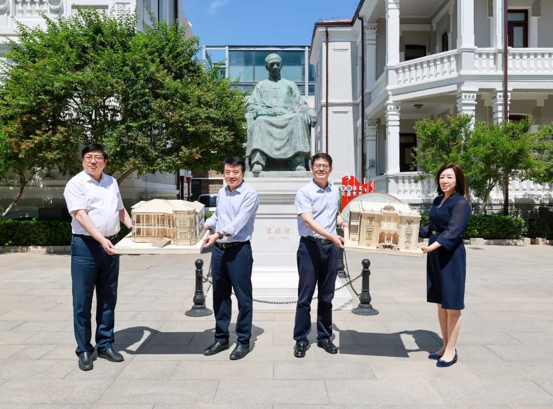 随后,史庆伟代表学校向两个场馆分别赠送了精美模型。该模型是bv伟德国际1946红色资源保护利用中心师生结合建筑测绘成果,分别制作的觉悟社合院和梁启超故居、饮冰室单体模型激光切割木工模型。