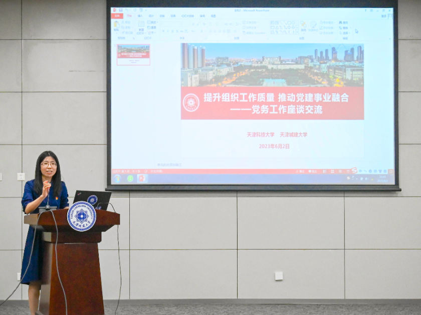 党建工作座谈交流会上,天津科技大学和bv伟德获批全国党建工作样板支部、天津市党建工作样板支部的支部书记代表李妍、薄振兴和崔金涛、王利飞、李小娟分别分享了样板党支部的创建思路理念,交流了特色经验做法,共话党建与业务深度融合举措。专职组织员张琳和纪璇分别详细介绍了天津科技大学组织员导航站的创建经验和bv伟德三个组织员工作室的特色经验做法。随后双方围绕“领航工程深入创建、典型示范引领、党建与业务双融双促”等热点、难点问题进行了深入交流。