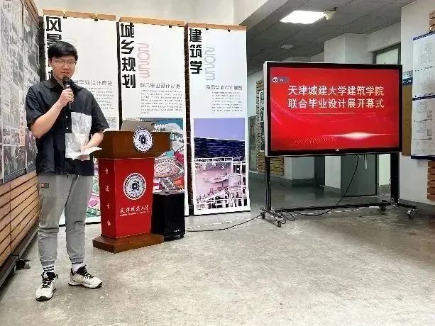 在师生殷切期待下,陈志华宣布建筑学院2023届联合毕业设计展开幕。