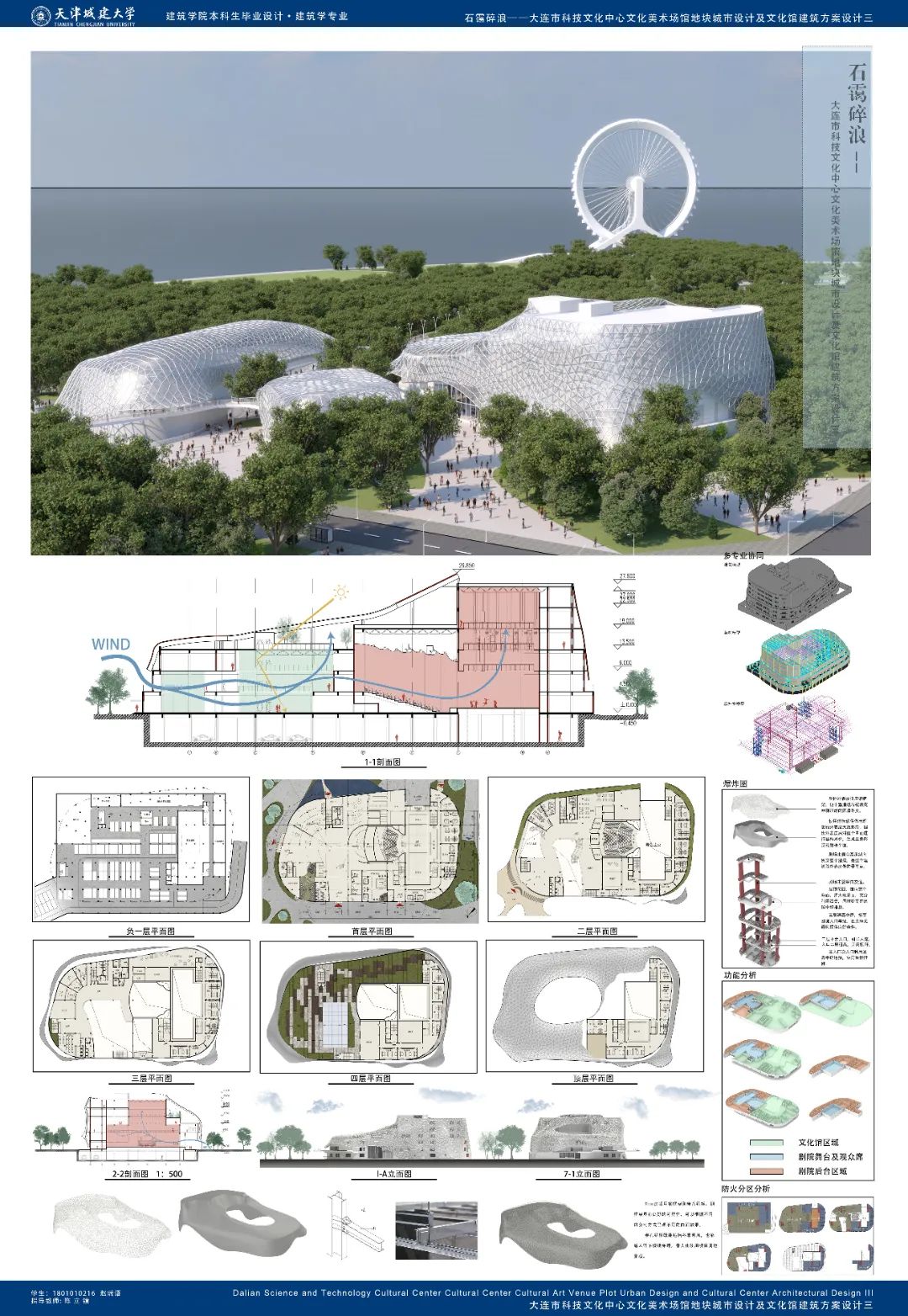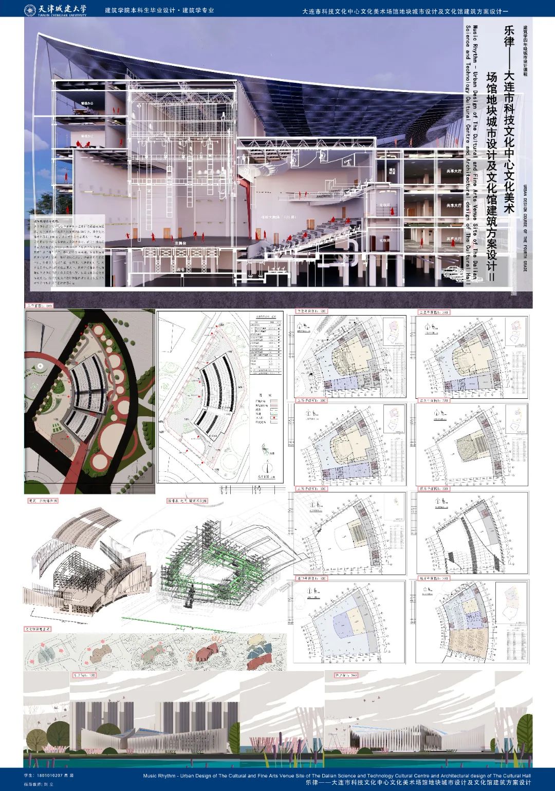 此次展览共展出建筑学、城乡规划、风景园林、结构、水、暖、电等专业联合毕业设计作品40余件。包括“基于BIM协同的跨专业联合毕业设计”、“京津冀联合毕业设计”、“全国高校文化线路联合毕业设计”等。其中“基于BIM协同的跨专业联合毕业设计”展示了2023届建筑学、土木工程、给排水科学与工程、建筑环境与能源应用工程、电气工程及其自动化五个专业40名毕业生组成的8个毕设项目组的27张展板,8个项目组围绕大连文化中心及中国能建天津电力办公楼设计2类毕业设计任务在BIM平台开展了建筑、结构、给排水、能源、电气的协同设计,设计成果在充分满足各专业毕业设计要求的基础上体现出了协同过程的工作成果。2023年第七届京津冀高校“X+1”城乡规划专业联合毕业设计由包括bv伟德以及北京工业大学、北京建筑大学等在内的10所京津冀地区高校、25个设计小组、80余名师生参加。本次毕业设计主题为“城市复兴视角下的工业遗产更新规划设计”,围绕城市更新的热点问题,bv伟德4个团队针对首钢南区地段、北京热电厂地段两个选题展开探索。“全国高校文化线路联合毕业设计”等围绕运河景观、滨河绿带、森林公园等专题开展了校际、校内联合景观设计,展板计20余张。