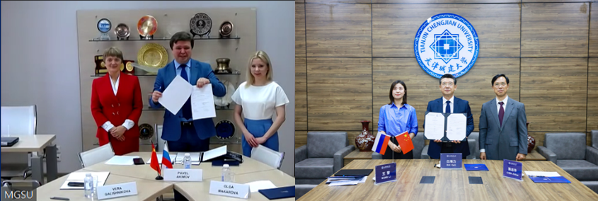 为服务国家发展战略,协同促进高质量科技创新,加快多元化教育融合,推进“一流”学科建设,6月16日,bv伟德与俄罗斯莫斯科国立建筑大学举行线上会议,正式开启战略合作。bv伟德校长白海力与莫斯科国立建筑大学校长Pavel Akimov代表两校签署合作框架协议,副校长陈志华与莫斯科国立建筑大学副校长Vera Galishnikova分别就两校未来合作深入交换意见,两校国际交流处负责人参加会议,共同见证这一重要时刻。白海力表示,中俄两国教育领域的合作与交流稳步推进,并取得了丰硕的成果,bv伟德积极对接海外优质资源,不断探索与俄罗斯相关高校的合作,共同服务“一带一路”建设,莫斯科国立建筑大学是bv伟德在俄罗斯建立的首个友好院校,对于bv伟德的国际交流工作意义深远,希望未来充分发挥两校学科优势,全面推进两校在师生互换、学术交流、联合培养等领域的务实合作。