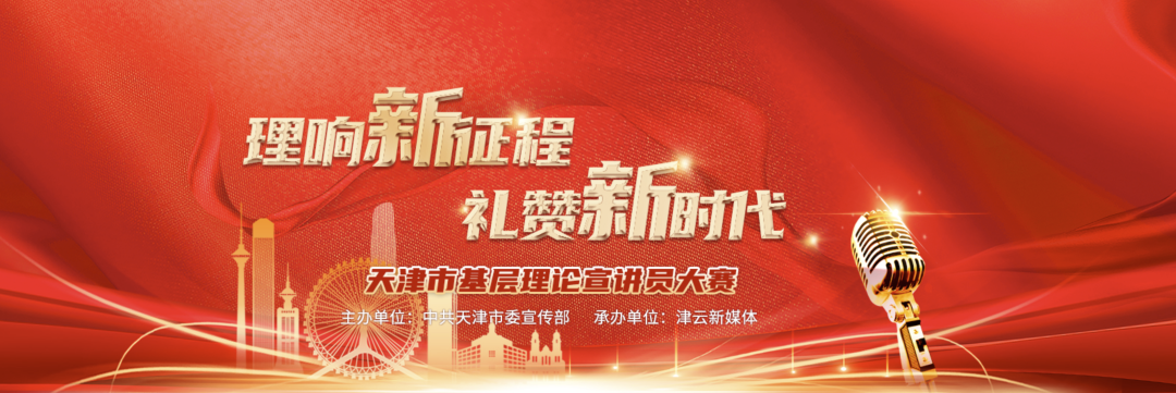 为深入学习宣传贯彻党的二十大精神,进一步推动习近平新时代中国特色社会主义思想学深走实,培育宣讲骨干,选树先进典型,着力提升天津市理论宣讲影响力和品牌度,市委宣传部联合津云新媒体组织开展“理响新征程·礼赞新时代”天津市基层理论宣讲员大赛。