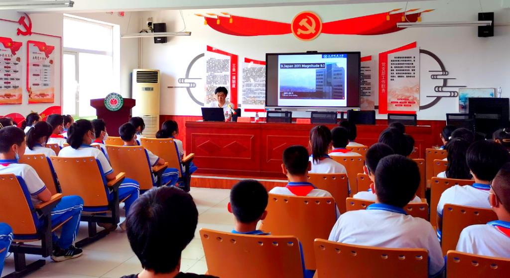 在王卜庄镇教委的大力支持下,团队先后走入了王卜庄镇中心幼儿园、王卜庄小学、王卜庄初级中学以及王卜庄高级中心,并针对幼儿园、小学、初中、高中学生的不同认知水平,采用动画、折页、模型、问卷调查、现场示范等方式,开展“韧性”素养宣传教育,深入浅出地为师生讲解了韧性城市理念以及震前预防、震时避险、自救互救等实用防灾知识,同时结合具体事例为初高中学生讲解了地震物理本质、抗震前沿技术等知识,并引导学生深刻感悟中国共产党人精神谱系中的抗震救灾精神。