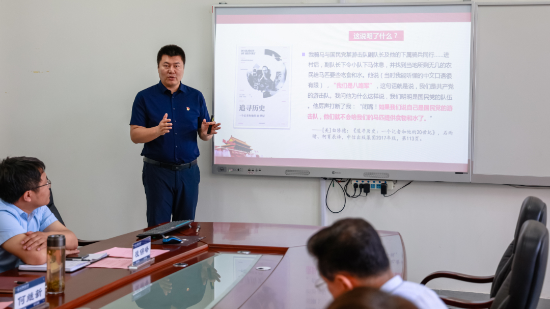 中国近现代史纲要教研室杨贺副教授以《为什么说中国共产党是中华民族抗日战争的中流砥柱》为题开展了集体备课,他围绕砥柱山巍、稳、硬的特征,从“顶天立地、指引方向”“风吹雨打、岿然不动”“千磨万折、百炼成钢”三个方面深刻阐述了为什么说中国共产党是中华民族抗日战争的中流砥柱,充分展示了bv伟德思政课教师坚持“八个相统一”原则,精心打磨课程的成果。