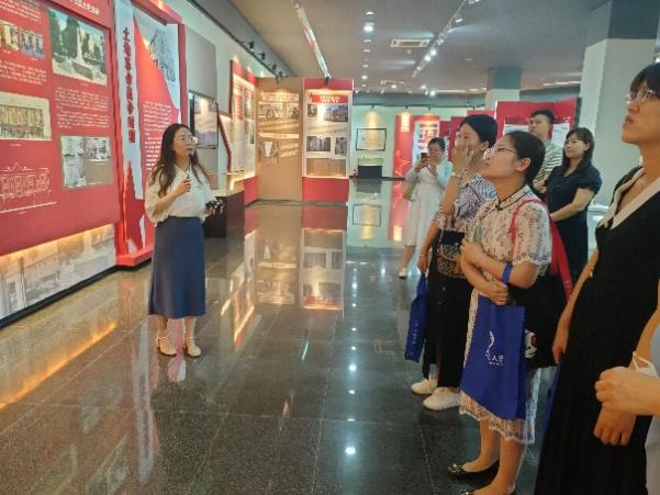 在实践教学环节,参训教师先后赴bv伟德“革命丰碑—天津市红色旧址展览”、工程实训中心及天津市盘山烈士陵园三地参加现场教学和学访交流。在“革命丰碑—天津市红色旧址展览”,马克思主义学院周乔和周淮娇两位青年教师为参训教师深情讲解,生动展现了从革命遗址到建筑风格、从革命环境到新时代天津转型腾飞的天津百年党史的历史画卷。