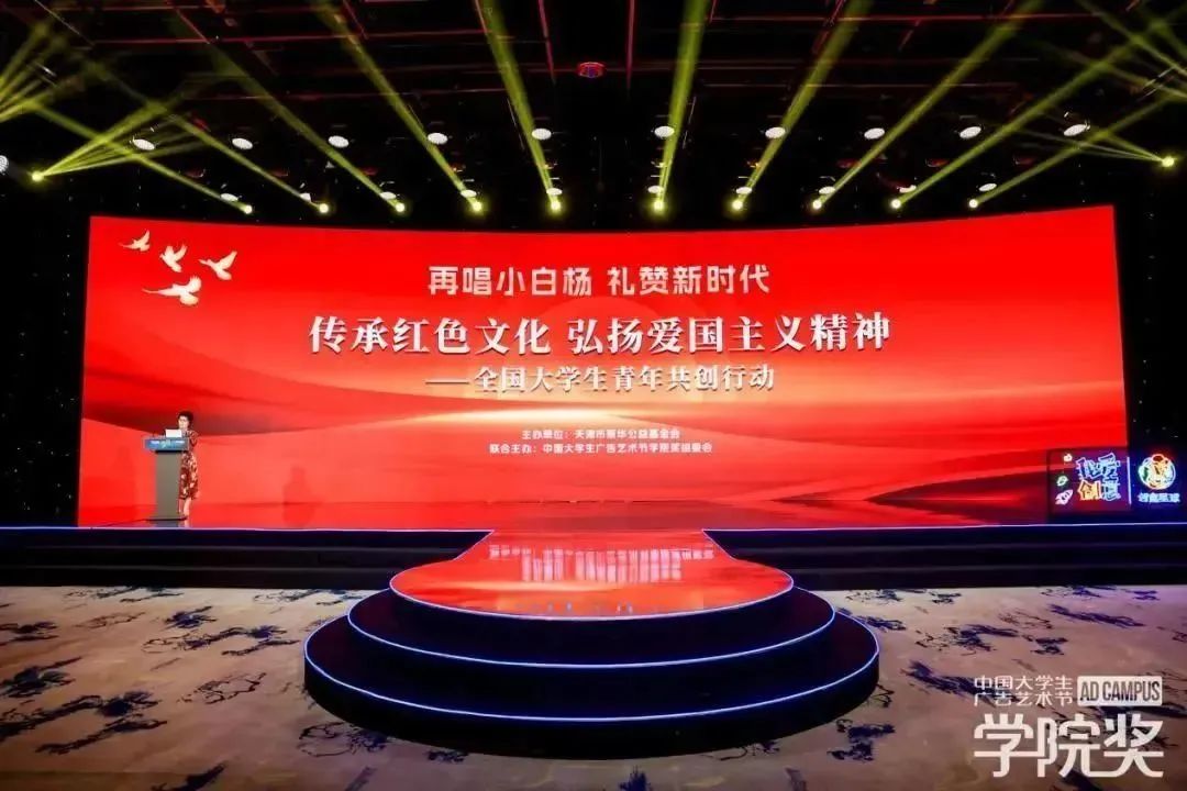 最后,由张景华与中国大学生广告艺术节学院奖组委会、创意星球董事长穆虹,以及部分高校老师代表以及媒体代表、青年代表共同按下光球,完成了《传承红色文化,弘扬爱国主义精神》全国大学生青年共创行动启动仪式。
