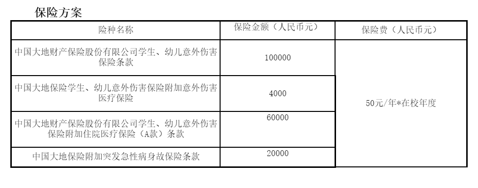 您好!值此新学年来临之际,衷心祝愿您身体健康,学习进步!为给您提供充分的保障,我们设计了学生综合保障方案,提供包括意外伤害保险(身故、伤残)、意外伤害医疗保险、住院医疗保险(意外住院、疾病住院)或突发急性病身故保险,仅根据您投保的具体险种承担相应的保险责任,在社保城乡居民医保保险报销后提供一次商保补充保险二次报销。