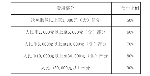 对应费用部分与对应给付比例见上表,本附加险合同就对应费用部分和对应给付比例另有约定的,从其约定。