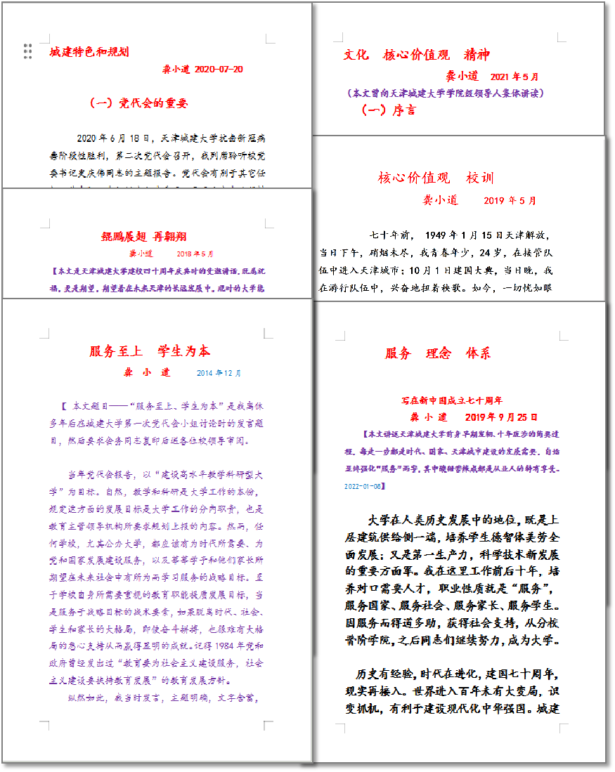 新冠疫情爆发后,龚老第一时间捐款十万元用于抗击疫情;党史学习教育动员大会召开后,他第一时间深入到师生中开展校史教育;他响应国家号召,在身体符合要求的情况下,第一时间接种了新冠疫苗;天津市第十二次党代会胜利闭幕后,他第一时间向学校提出要加快智能和城乡一体化规划建设人才力度,助力制造业立市战略和乡村振兴的建议;党的二十大闭幕后,他更是把学习党的创新理论作为每天的必修课,如饥似渴地学原文、悟原理,从党的创新理论中汲取奋进力量。