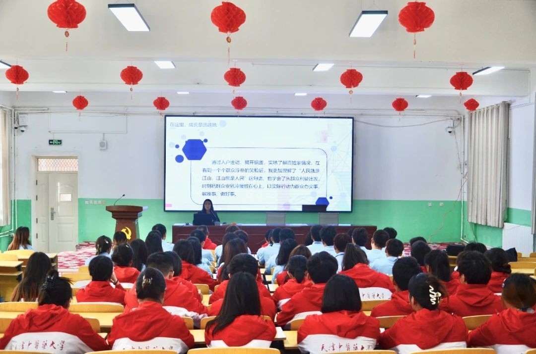陈磊对此次见面会进行总结发言,并对全体支教团成员提出三点期望:一是提高政治站位,加强理论学习,听党话,跟党走,听从组织召唤,向圆梦学姐学习,真正实现“文化润疆”;二是持续巩固深化主题教育成果,锚定青春航向,在新疆和田地区开展实地调研,干实事、启新程,推动以学铸魂、以学增智、以学正风、以学促干取得实效;三是厚植家国情怀,认真备课,将课程思政融入到日常教学当中,以透彻的学理分析回应学生,以彻底的思想理论说服学生,用真理的强大力量引导学生,铸牢中华民族共同体意识。