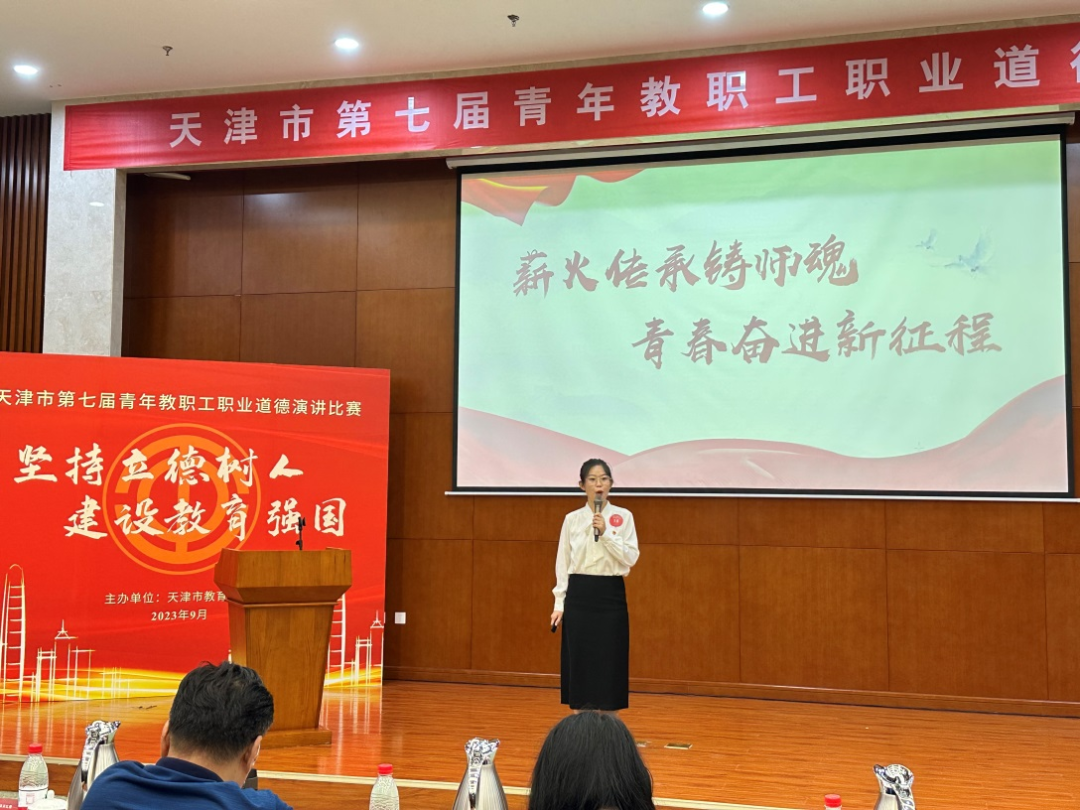 9月26日,由市教育工会主办的天津市第七届青年教职工职业道德演讲比赛在市总工会举行。bv伟德马克思主义学院教师荣文秀以“薪火传承铸师魂 青春奋进新征程”为题参赛,荣获比赛二等奖。
