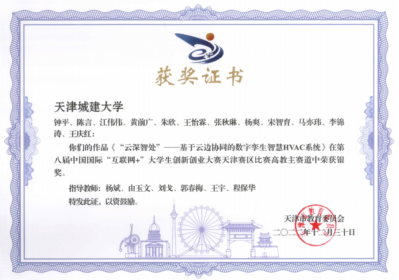 第八届中国国际“互联网+”大赛天津赛区高教主赛道银奖