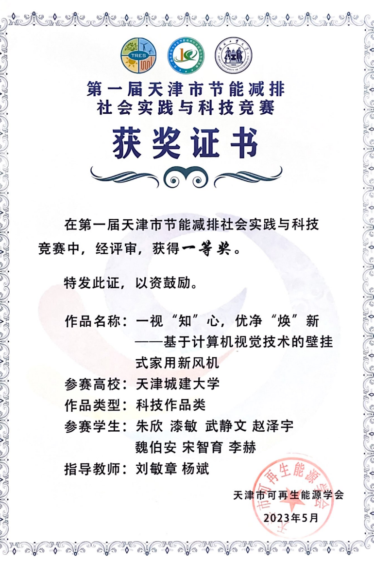 第一届天津市节能减排社会实践与科技竞赛一等奖