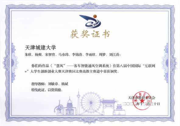 第八届中国国际“互联网+”大赛天津赛区高教主赛道铜奖
