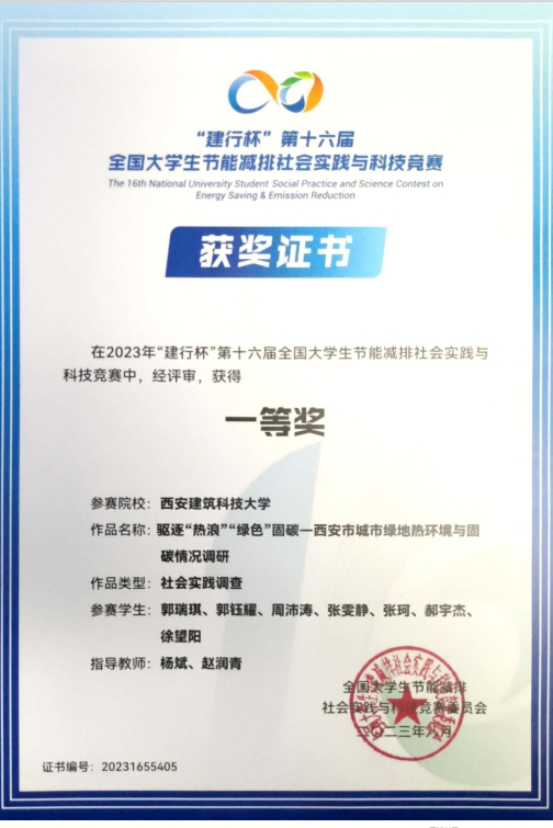 第十六届全国大学生节能减排社会实践与科技竞赛一等奖